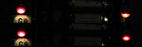 Das rote Glas im Rücklicht filtert vereinfacht gesagt die anderen