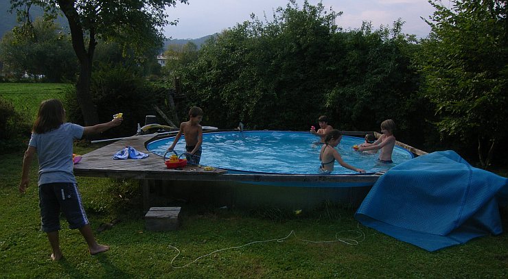 Die Stiege sieht man hier andeutungsweise, sie ist keine Schönheit. Krumm betoniert mit PVC drauf ... |