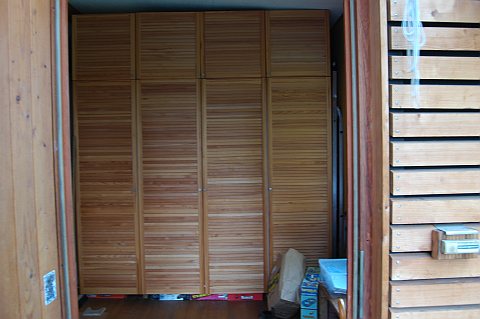 | Und der Windfangschrank hat endlich Türen bekommen - Lamellentüren vom Bauhaus. | ![]() |