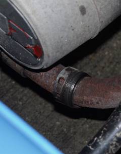 So gegen 15:30 starten wir von Graz. Das Wetter ist schon abendlich, dichte Bewölkung und recht finster. So lange es noch hell ist fahren wir Bundesstraßen, so der Plan. Drei Stunden später haben wir uns bei gefrierendem Nebel über die Pack bis ins Lavanttal vorgearbeitet (60 Kilometer, eine Runde Kaffee), und der erste technische Halt steht an: Christopher hatte so ein Klingeln vernommen - es rührt daher dass sich die Krümmermutter rausgearbeitet hat und lose am Krümmer baumelt. Eine gute Stunde dauerte die Reparatur, wobei durch mehrmalige Versuche die Sch...mutter gerade reinzubekommen immer mehr Aluspäne aus dem Zylinder kommen. Schließlich kann die Situation gerettet werden: Uwe borgt sich bei einer Baustellenpartie auf dem Heimweg (danke an die Hitthaller+Trixl Baugesellschaft m.b.H.) eine Eisensäge und zwei Feilen aus. Die Krümmermutter wird mithilfe des mitgeführten Schraubstocks gekürzt und kreuzförmig eingeschnitten - dann beißt sie wieder, gottseidank. Also rauf auf die Autobahn und wei... - nein, C. hatte leider keine Autobahnvignette besorgt ... |