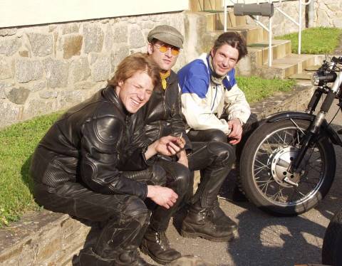 Albert freut sich. Er stößt in Hollabrunn mit der Enfield Bullet 500 dazu. |
