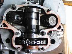 ausbauen. Nockenwellenzahnrad abnehmen, Kette sichern, Welle entnehmen. Der Kopf kommt als nächstes dran, auch er problemlos: alle Stehbolzen bleiben im Block, die Muttern öffnen brav. Dann die nächste Bauchweh-Aktion: die langen Alu-Hülsenmuttern die den Zylinder am Block halten. Grausliche Geschichten gehen um über völlig verrottete Gewinde, rundgedrehte Köpfe und dergleichen. Mit flankengreifenden Nüssen und Schlagschrauber gehts ruckzuck, und der Zylinder lässt sich abziehen. Genug für heute. Die Teilewerden noch angeschaut, die Laufspuren scheinen harmlos, lediglich das Stoßspiel der Kolbenringe legt einen Wechsel nahe (der Kolbenringe). Der Plan für den nächsten besuch: es werden die Ventile auf Dichtigkeit geprüft, dann die Ventilfedern ausgebaut und die Ventilschaftdichtungen getauscht. |