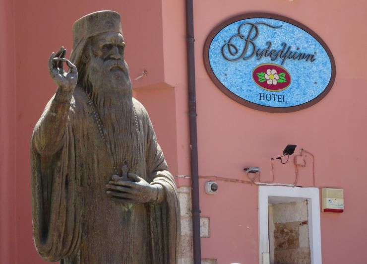 Das Kloster Gouvernetou ist inzwischen offen. Der diensthabende Mönch ist sehr freundlich aber bestimmt: übernachten ist nicht möglich: "Sorry, we do not allow".
