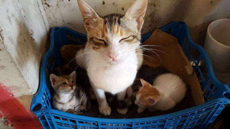 Nach einem versuchten Schnellstart kommen wir gegen 10:30 los. Alles packen, duschen und ausgiebig frühstücken dauert halt ... außerdem müssen wir Katzerl schauen, Eva hat den Wurf von Katze Anna entdeckt.