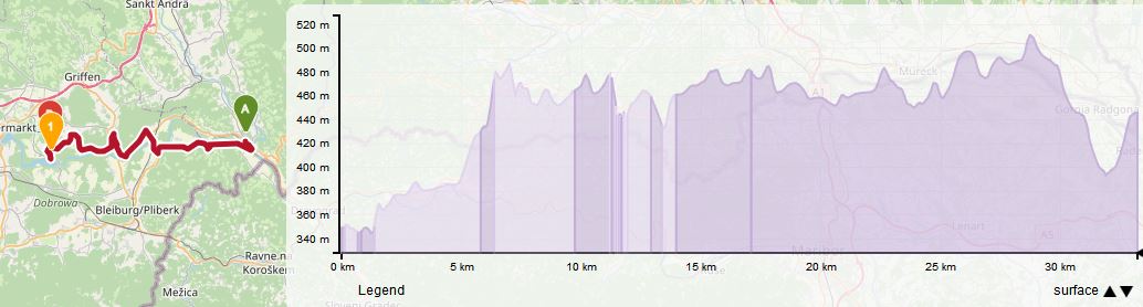 Landschaftlich sehr schön ist es vor Trbonje, dann geht es etwas fad ab Dravograd über die Grenze nach Lavamünd.