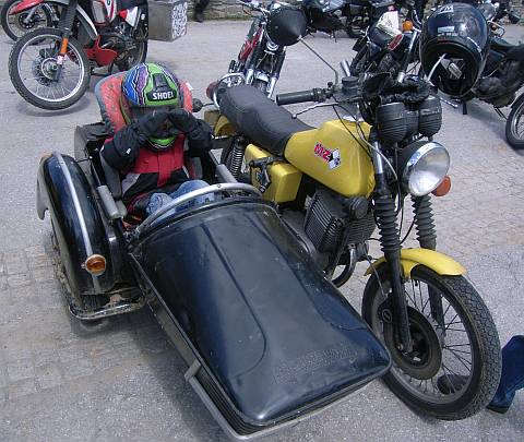 Junak rennt - wegen abgebrochenem Kicker bedarf der polnische "Held" eines leMans-Starts (oder Schiebehilfe). Alex: "Ich versteh des ned, jetzt hab ich den Hebel schon viermal geschweisst, und er bricht immer wieder ab" |