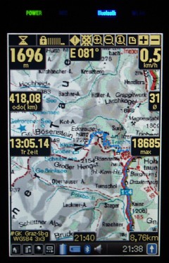 Mit dieser Ausrüstung waren wir in Slowenien unterwegs - und fasziniert davon dass man tatsächlich zumeist am Bildschirm "auf der Straße" unterwegs ist. Spricht für die Qualität der verwendeten Wanderkarten (ich hatte dazu einen Wanderatlas eingescannt und kalibriert). |