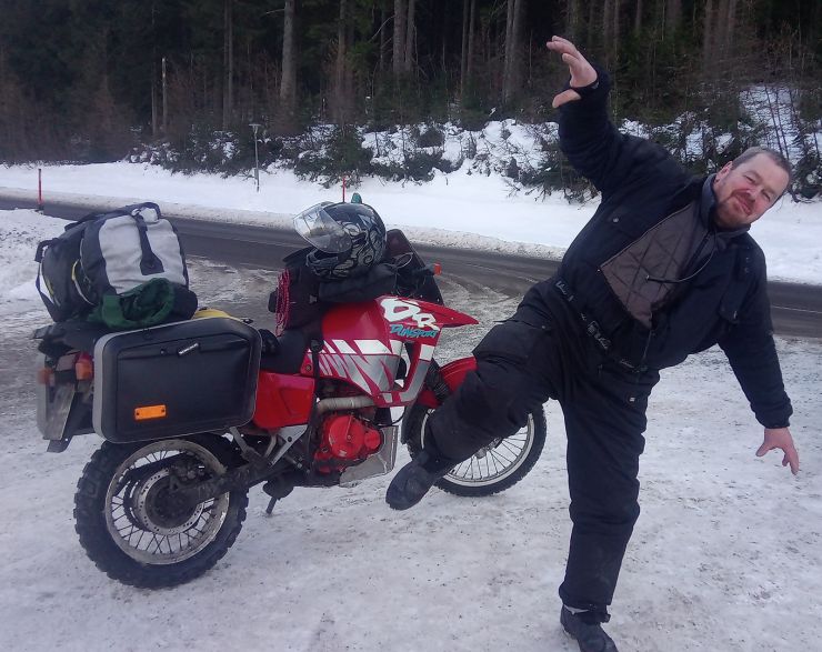 Und ums Eck sitzt der Dieter vor seiner Suzuki DR Big 800, neu hier aber flott eingewöhnt: