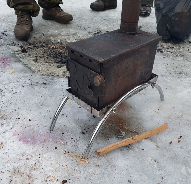 Der kleine Ofen ist recht mühsam am Leben zu erhalten ... Matthias muss den Rauch unten reinblasen, damit er beim Kamin rauskommt.